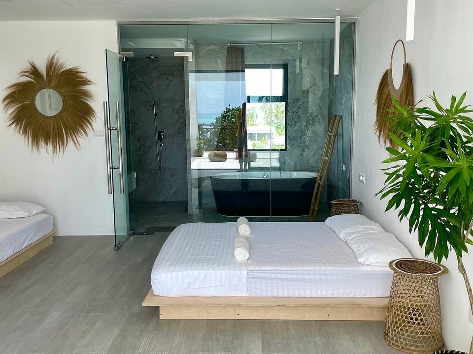 On the ground floor, a restaurant decorated in Balinese style with international cuisine and exotic dishes frames the splendid sea.